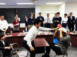 | 数ヶ月に1回、拠点長と各部署の責任者が集まり会議をおこないます。会議後は、社員交流の場として、本社スタッフも交えて懇親会をおこないます。懇親会では推進委員が会ごとに任命され、参加者が楽しめるようなイベントを企画しています。 |